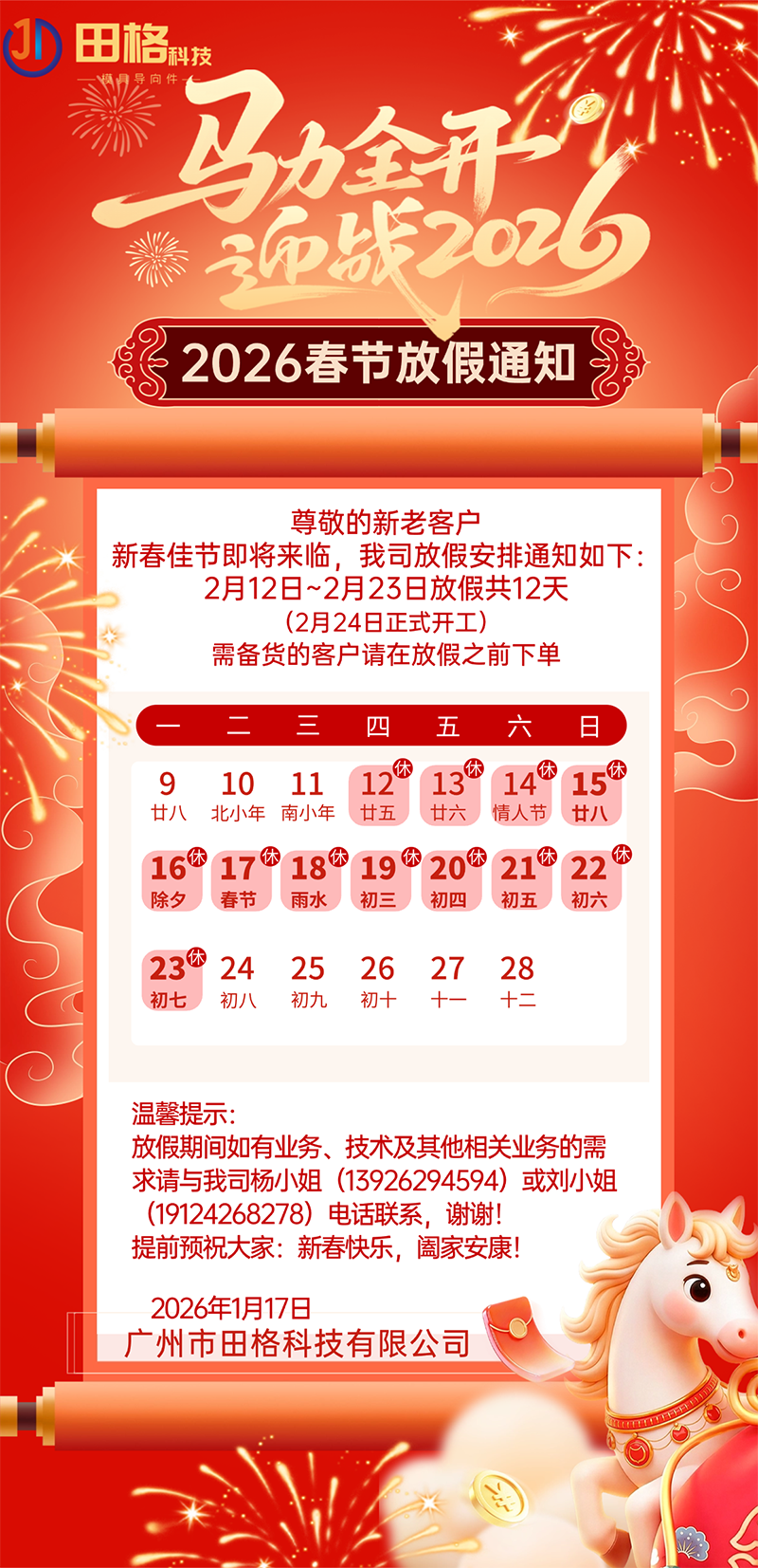 2026春节放假通知