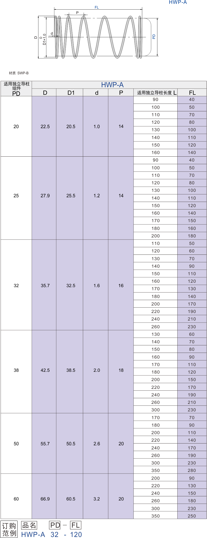 产品参数选购 HWP-A(独立导柱组件-配件)