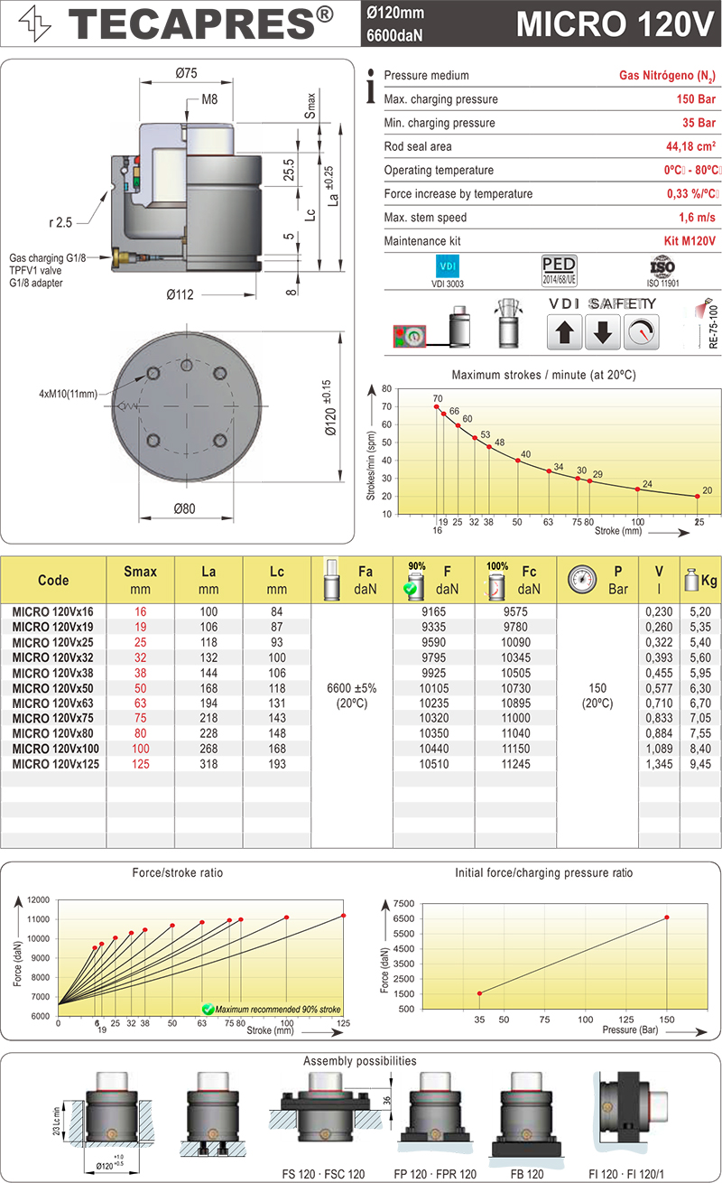 产品参数选购 TECAPRES 氮气弹簧 MICRO 120V
