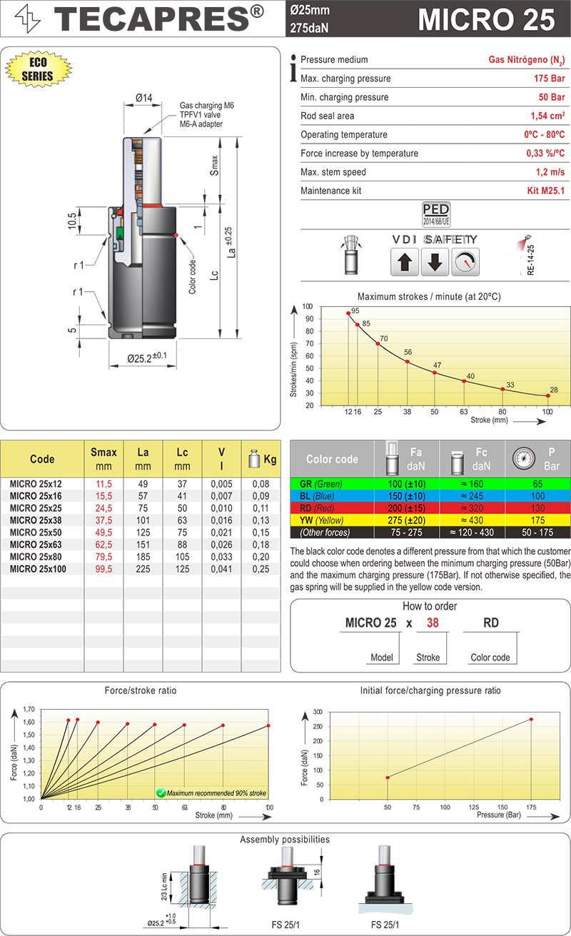 产品参数选购 TECAPRES 氮气弹簧 MICRO 25