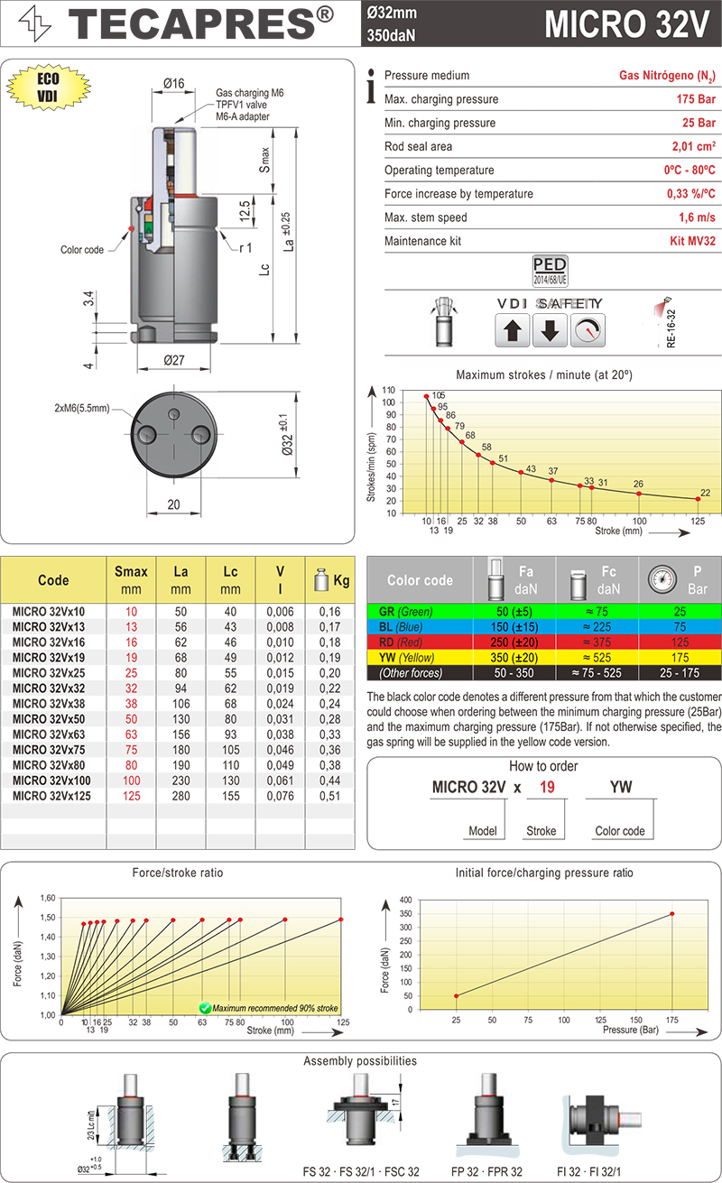 TECAPRES 氮气弹簧 MICRO 32V