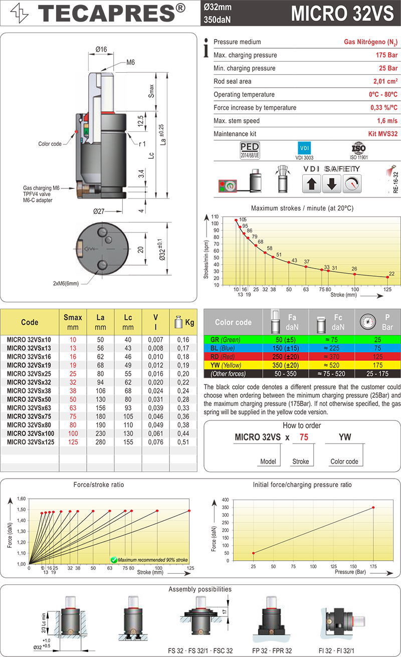TECAPRES 氮气弹簧 MICRO 32VS