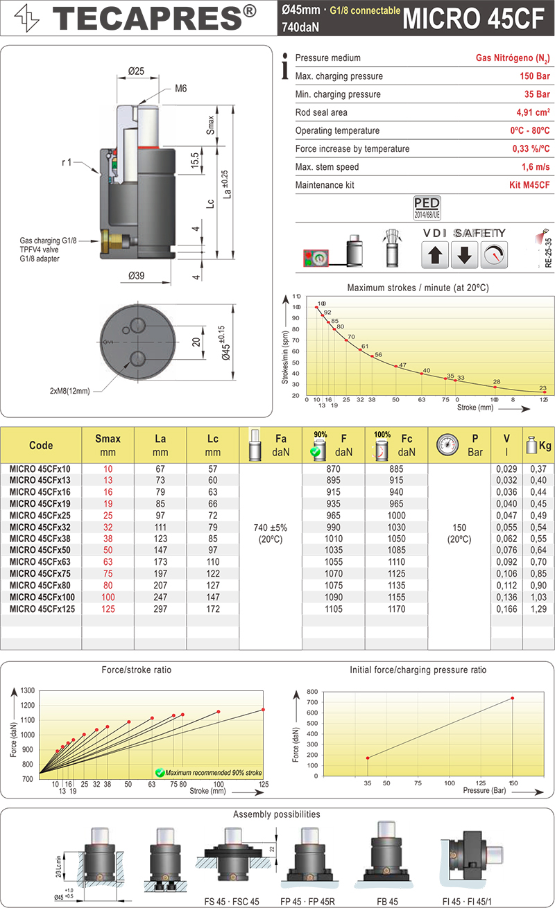 产品参数选购 TECAPRES 氮气弹簧 MICRO 45CF
