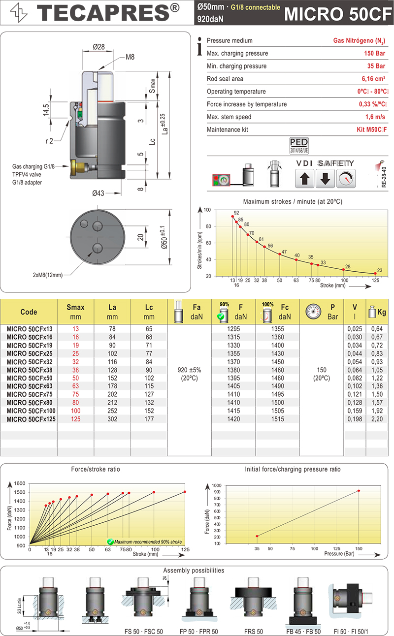 产品参数选购 TECAPRES 氮气弹簧 MICRO 50CF