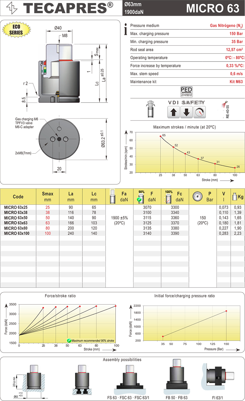 TECAPRES 氮气弹簧 MICRO 63