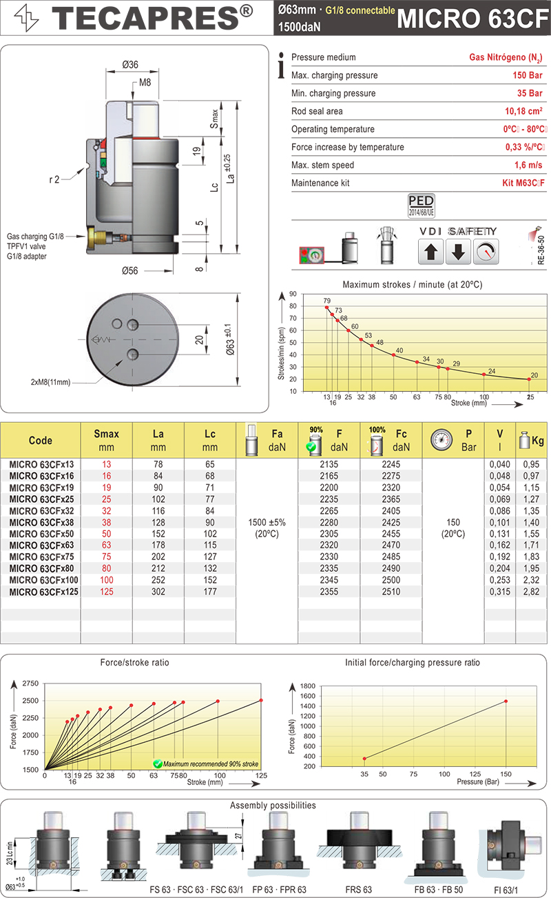 产品参数选购 TECAPRES 氮气弹簧 MICRO 63CF