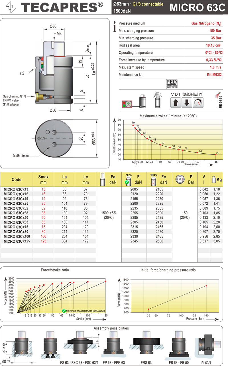 产品参数选购 TECAPRES 氮气弹簧 MICRO 63C